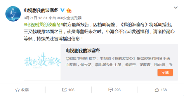 于朦胧鞠婧祎《新白》宣布延期 "波塞冬"暂缓上线